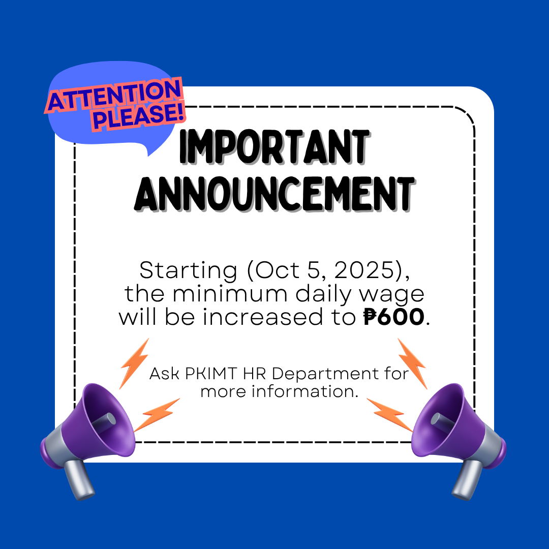 All employers are expected to comply with the new wage rate. For any questions or clarifications, feel free to contact us here tel. (043) 405- 6388 to 89 or hrd@pkimt.com .
